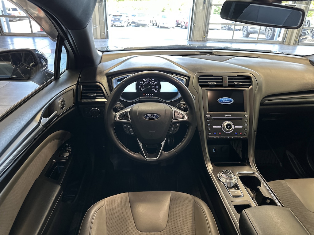 THIS VEHICLE ALSO HAS THE FOLLOWING OPTIONS AND FEATURES:Equipment Group 401A, Fusion V6 Sport Driver Assist Package (110V/150W AC Power Outlet, Auto High Beams, BLIS w/Cross-Traffic Alert, Heated Steering Wheel, Lane-Keeping System, Rain-Sensing Wipers, and SYNC Connect), Fusion V6 Sport Upgrade Package ((2) 4.2" Driver Configurable LCD Display, 10-Way Power Passenger Seat, Ambient Lighting, Dual-Zone Electronic Automatic Temperature Control, Radio: AM/FM/MP3 CD Player, Reverse Sensing System, SiriusXM Radio, and SYNC 3 Communications & Entertainment System), Fusion Sport, 4D Sedan, 2.7L V6 EcoBoost, AWD, Electronic Stability Control, Exterior Parking Camera Rear, Memory seat, Navigation System, Power Moonroof, Universal Garage Door Opener, Voice-Activated Touchscreen Navigation System, Wheels: 19" Premium Dark Tarnish-Painted Aluminum, 4-Wheel Disc Brakes, 9 Speakers, ABS brakes, Adaptive suspension, Air Conditioning, All-Weather Front & Rear Floor Mats, Alloy wheels, AM/FM radio: SiriusXM, Auto-dimming door mirrors, Auto-dimming Rear-View mirror, Brake assist, Bumpers: body-color, CD player, Compass, Cooled Driver and Passenger Seats, Delay-off headlights, Driver door bin, Driver vanity mirror, Dual front impact airbags, Dual front side impact airbags, Emergency communication system: 911 Assist, Four wheel independent suspension, Front anti-roll bar, Front Bucket Seats, Front Center Armrest, Front fog lights, Front reading lights, Fully automatic headlights, Heated door mirrors, Heated front seats, Illuminated entry, Knee airbag, Leather/Miko Suede Heated Sport Bucket Seats, Low tire pressure warning, Occupant sensing airbag, Outside temperature display, Overhead airbag, Overhead console, Panic ala
