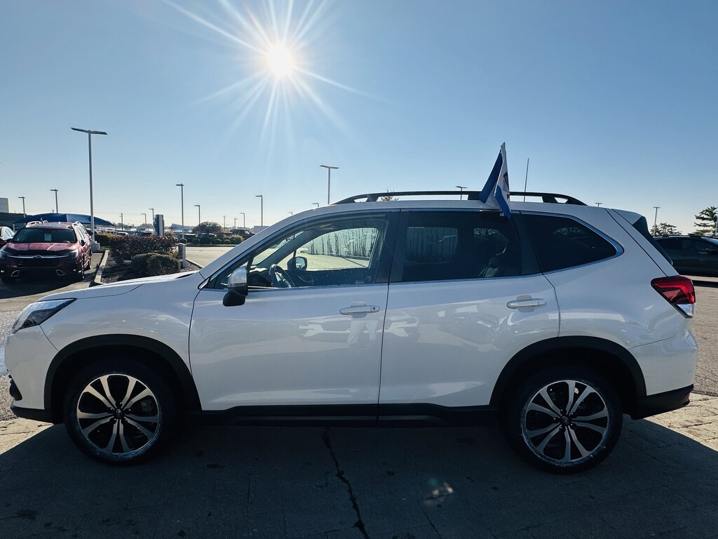 Certified. Crystal White Pearl 2022 Subaru Forester Limited AWD Lineartronic CVT 2.5L 4-Cylinder DOHC 16V Clean Carfax, Leather, Certified, 1-Owner Clean Carfax, All Wheel Drive | AWD, Heated Seats, Local Trade, Hard to Find, Serviced Here, Sirius XM, Apple Car Play / Android Auto, 4-Wheel Disc Brakes, 6 Speakers, ABS brakes, Air Conditioning, AM/FM radio: SiriusXM, Anti-whiplash front head restraints, Auto High-beam Headlights, Automatic temperature control, Brake assist, CD player, Dual front impact airbags, Dual front side impact airbags, Electronic Stability Control, Emergency communication system: STARLINK Safety and Security (Subscription Required), Exterior Parking Camera Rear, Front anti-roll bar, Front dual zone A/C, Front fog lights, Fully automatic headlights, Heated Front Bucket Seats, Knee airbag, Low tire pressure warning, Occupant sensing airbag, Overhead airbag, Panic alarm, Power driver seat, Power Liftgate, Power moonroof: Panoramic, Power steering, Power windows, Radio data system, Radio: Subaru Starlink 8.0 Multimedia Plus System, Rear anti-roll bar, Remote keyless entry, Security system, Speed control, STARLINK/Apple CarPlay/Android Auto, Wheels: 18 x 7.0J Black Machine Finish Alum Alloy.