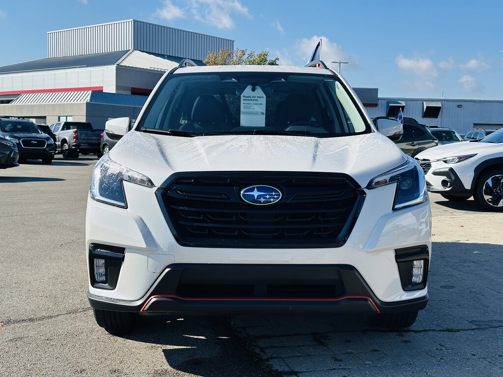 Crystal White Pearl 2023 Subaru Forester Sport AWD Lineartronic CVT 2.5L 4-Cylinder DOHC 16V Clean Carfax, Sunroof | Moonroof, Certified, 1-Owner Clean Carfax, All Wheel Drive | AWD, Heated Seats, Local Trade, Hard to Find, Serviced Here, Sirius XM, Apple Car Play / Android Auto, 4-Wheel Disc Brakes, 8 Audio w/harman/kardon & RAB & Power Rear Gate, Anti-whiplash front head restraints, Auto High-beam Headlights, Brake assist, Dual front impact airbags, Electronic Stability Control, Emergency communication system: STARLINK Safety and Security (Subscription Required), Exterior Parking Camera Rear, Front anti-roll bar, Front fog lights, Fully automatic headlights, harman/kardon 9-Speaker Audio System, Low tire pressure warning, Overhead airbag, Power moonroof: Panoramic, Power Rear Gate, Radio: Subaru Starlink 8.0 Multimedia Plus System, Rear anti-roll bar, Reverse Automatic Braking System (RAB), STARLINK/Apple CarPlay/Android Auto, Wheels: 18 x 7.0 J Black Finish Aluminum-Alloy.