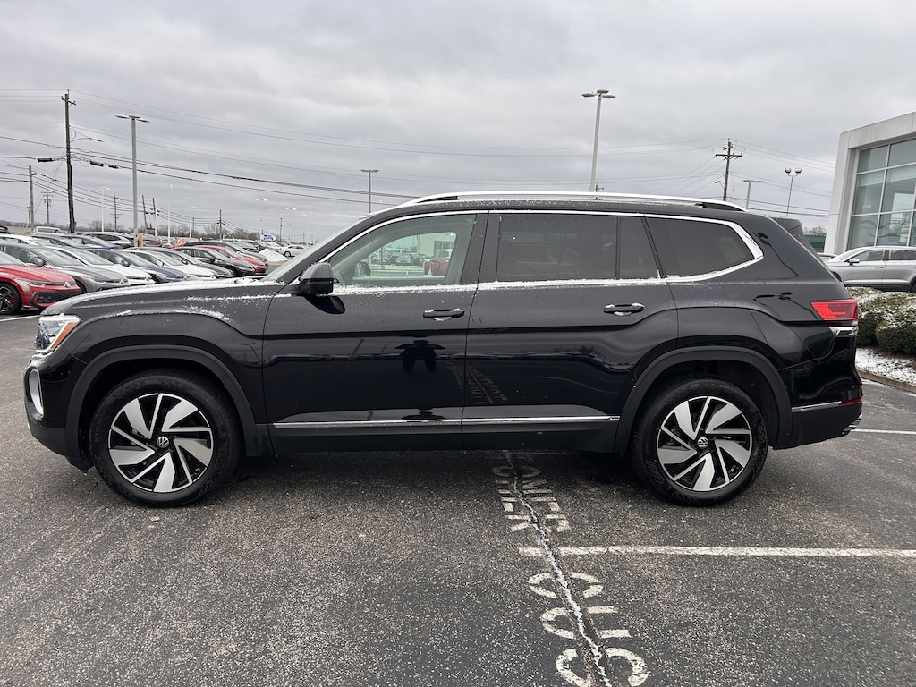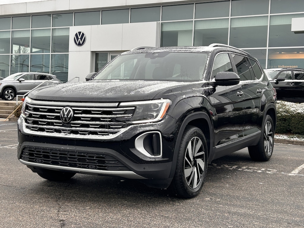 New Price! CARFAX One-Owner. Certified. Deep Black Pearl 2025 Volkswagen Atlas 2.0T SEL 2.0L TSI 8-Speed Automatic Apple Car Play / Android Audio, Remote Start, Bluetooth, GPS/Navigation, Rear Back Up Camera, Leather, Heated Seats, Sunroof / Moonroof, 7 Passenger Third Row Seating, AWD All Wheel Drive, Captains Chairs, Atlas 2.0T SEL, AWD, Titan Black w/perforated vienna leather seating surfaces, 2nd-row dual captain's chairs, Heated front seats, Power moonroof: Panoramic.