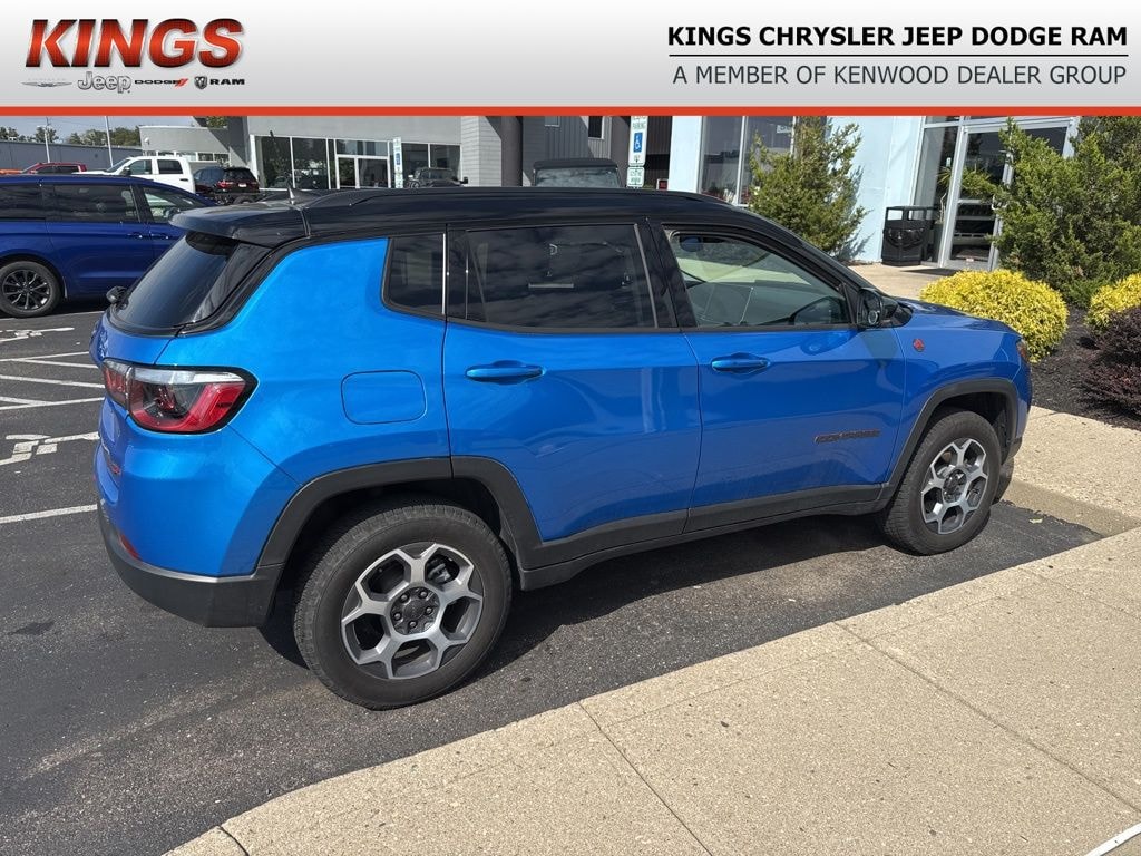 Recent Arrival! Certified. CARFAX One-Owner. Local Trade In, Hands Free Bluetooth, Backup Camera, Remote Start, Compass Trailhawk, 4D Sport Utility, 2.4L I4, 9-Speed 948TE Automatic, 4WD, Laser Blue Pearlcoat, Ruby Red/Black w/Premium Cloth/Leather Trim Bucket Seats or Premium Leather Trimmed Bucket Seats, 10.1" Touchscreen Display, 6 Speakers, AM/FM radio: SiriusXM, Auto High-beam Headlights, Automatic temperature control, Brake assist, Delay-off headlights, Front dual zone A/C, Front fog lights, Fully automatic headlights, Illuminated entry, ParkView Rear Back-Up Camera, Quick Order Package 2GE, Radio: Uconnect 5 w/10.1" Display, Security system, Speed control, Telescoping steering wheel, Tilt steering wheel, Wheels: 17" x 6.5" Painted Diamond Cut Aluminum. Clean CARFAX. 2022 Jeep Compass