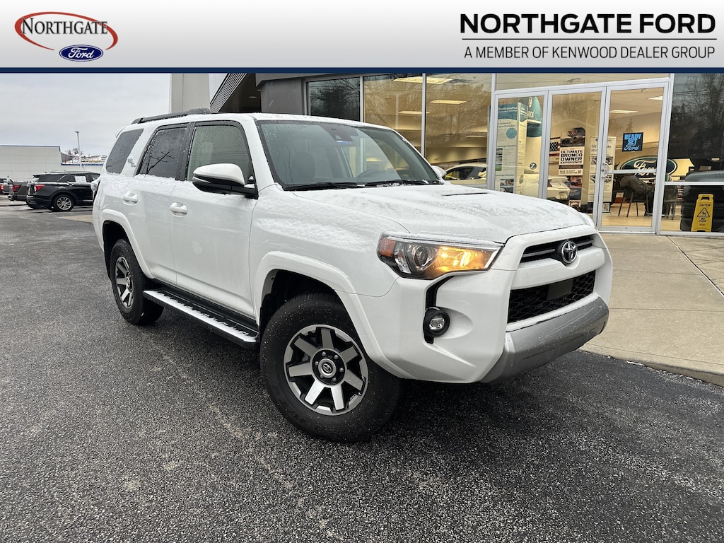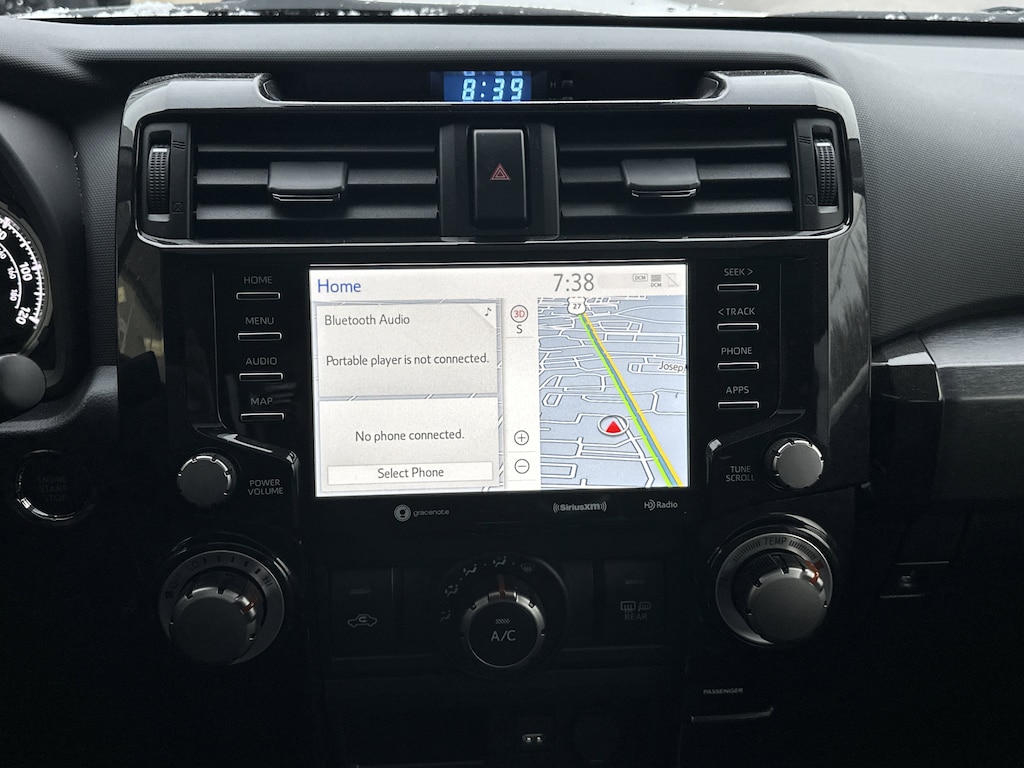 THIS VEHICLE ALSO HAS THE FOLLOWING OPTIONS AND FEATURES:4Runner TRD Off-Road Premium, 4D Sport Utility, 4.0L V6 DOHC 24V, 4WD, AM/FM radio: SiriusXM, Auto High-beam Headlights, Electronic Stability Control, Exterior Parking Camera Rear, Front fog lights, Heated Front Bucket Seats, Heated Outside Rear-View Mirrors, Moonroof w/Tilt Up & Slide, Navigation System, Radio: Premium Audio, 3.727 Axle Ratio, 4-Wheel Disc Brakes, 8 Speakers, ABS brakes, Air Conditioning, Alloy wheels, Anti-whiplash front head restraints, Apple CarPlay/Android Auto, Auto-dimming Rear-View mirror, Black Roof Rails, Brake assist, Bumpers: body-color, Compass, Driver door bin, Driver vanity mirror, Dual front impact airbags, Dual front side impact airbags, Emergency communication system: Safety Connect (1-year trial), Front anti-roll bar, Front Bucket Seats, Front Center Armrest, Front reading lights, Front wheel independent suspension, Garage Door Opener, Garage door transmitter: HomeLink, Heated door mirrors, Heated front seats, Heated steering wheel, Illuminated entry, Knee airbag, Leather Shift Knob, Low tire pressure warning, Occupant sensing airbag, Outside temperature display, Overhead airbag, Overhead console, Panic alarm, Passenger door bin, Passenger vanity mirror, Power door mirrors, Power driver seat, Power passenger seat, Power steering, Power windows, Rear anti-roll bar, Rear seat center armrest, Rear window defroster, Rear window wiper, Remote keyless entry, Security system, SofTex Seat Trim, Speed control, Speed-sensing steering, Split folding rear seat, Spoiler, Steering wheel mounted audio controls, Tachometer, Telescoping steering wheel, Tilt steering wheel, Traction control, Trip computer, Turn signal indicator mirrors, and Variably intermittent wipers.